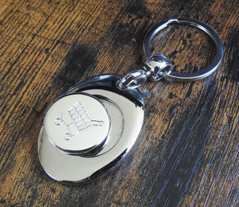Trolley Disc Keyring - (2.9cm image) with useful magnetic trolley disc on reverse (fits most UK shopping trolleys). £5.75 each.