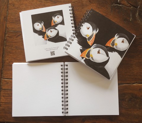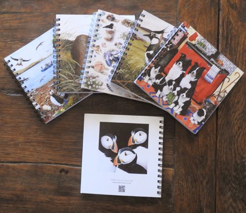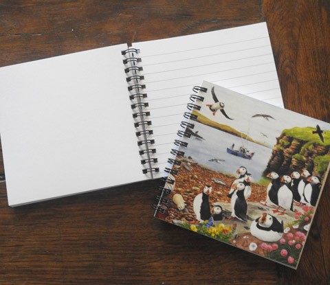 Always useful! Wire-bound notebooks with thick, 350gsm illustrated covers and 120gsm inner paper (blank one side and lined the other).